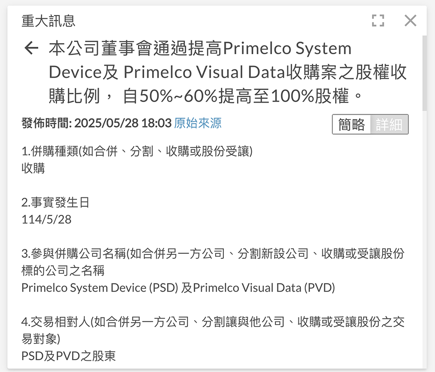 2025 年融程電花費 4.7 億新台幣,併購兩家瑞士當地的 POS 機與工業電腦公司,目前已持有 100% 股權,預計可貢獻母公司每年約新台幣 10 億元的營收,近年來融程電的股股價營收比(見下圖,P/S ratio)大多落在 3 倍以上,此併購案以 0.47 倍(4.7 / 10)取得具有營運實績的子公司,對公司估值應可有正向幫助。此外,公司表示仍會繼續併購其他公司,顯示其擴張的積極性。