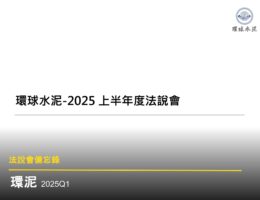 0環泥 2025Q1 淨利年增 16%。規劃 4 億元水泥廠設備更新,擴充預拌廠。南台灣台積電及公共工程需求支撐營運。