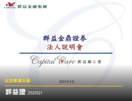 1羣益證券2025Q2法說會,回顧Q1獲利年減,受川普政策不確定性影響。前四月自結稅後淨利9.27億元,EPS 0.43元。公司目標提升ROE、推動ESG永續,並聚焦八大營運策略。