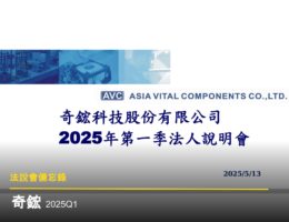 0奇鋐 2025Q1 受惠伺服器強勁動能,營收獲利顯著成長,伺服器佔比逾 45%,越南廠持續擴產,預期營收將逐季成長。