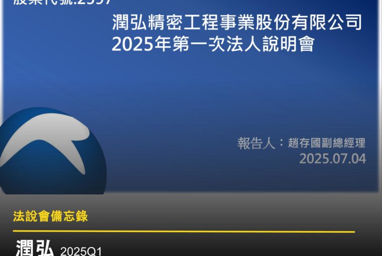 - 2025Q1 財務表現: 2025 年第一季為傳統淡季,營收 22.3 億元,營業淨利 1,200 萬元。因有處分資產之業外收益挹注,稅後淨利達 2.47 億元,EPS 為 0.61 元。