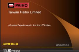 百和(市:9938)於 2025 年 4 月 24 日舉行法說會,由發言人代表公司向投資人說明 2025 年第一季的營運狀況。本次法說會較往常延後約一週舉行。