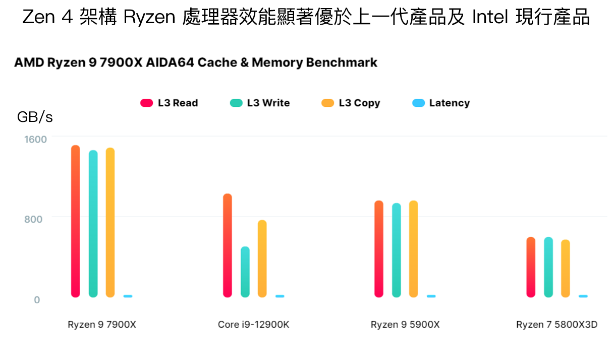 使用 Zen 4 架構並採用台積電 5nm 製程的 Ryzen 7000 系列 PC CPU 預計在 2022/9 月上市,參考國外網站的測試結果,高階 Ryzen 9-7900X 的讀寫速度較 Ryzen 9 5900X 在快取讀寫速度增加近 60%,效能也明顯勝出 Intel 現行高階 Core i9-12900K。再加上 Intel 下一代 Core 處理器僅是小改版,製程、架構皆無變化,預期效能不會有太大的進步,AMD 在此階段的產品競爭力更勝一籌,在消費性市場的市占率同樣有望持續成長。