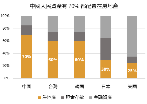 此外,因中國土地國有化,賣地一直是地方政府最重要的財政收入來源(超過 40%),政府利益與房地產高度掛勾,因此政府雖一直有透過各種政策試圖調控房價,例如限購、限貸令,但對房企開發的監管都睜一隻眼閉一隻眼,導致中國大多房地產公司的槓桿比例過高、並且為了建案收入而創造許多假性需求,使房價持續上漲。