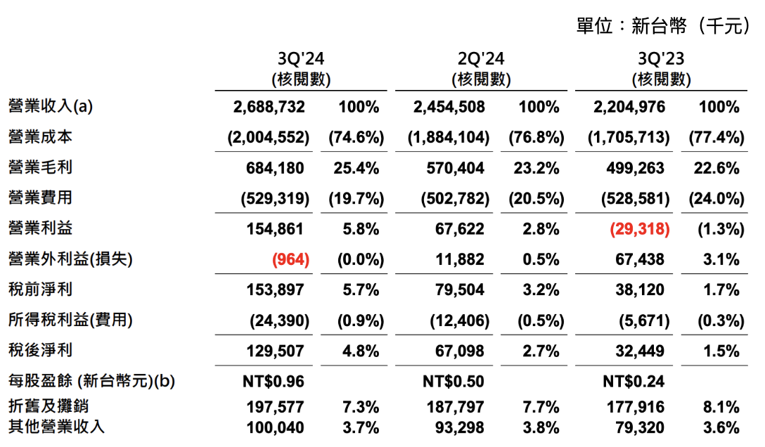 - 轉虧為盈: 2024 年前三季 稅後淨利達 2.26 億元,較去年同期大幅改善。