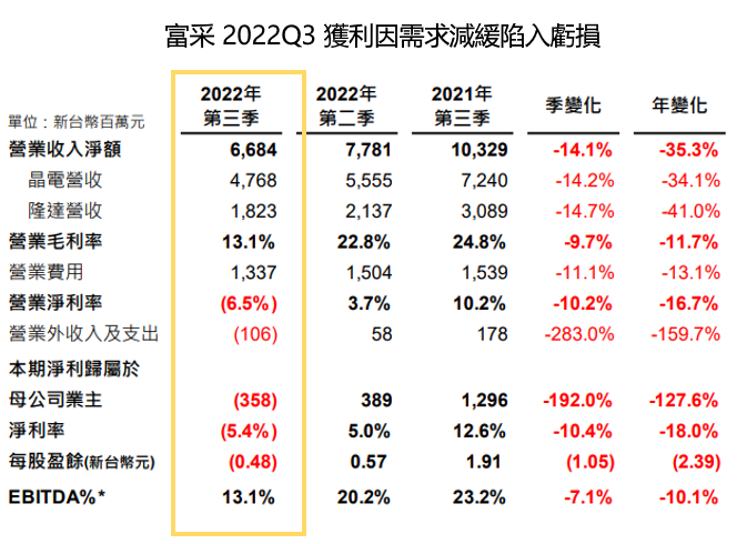 2022Q3 Mini LED 佔富采營收 20%,較上季(佔比 25%) 減少。