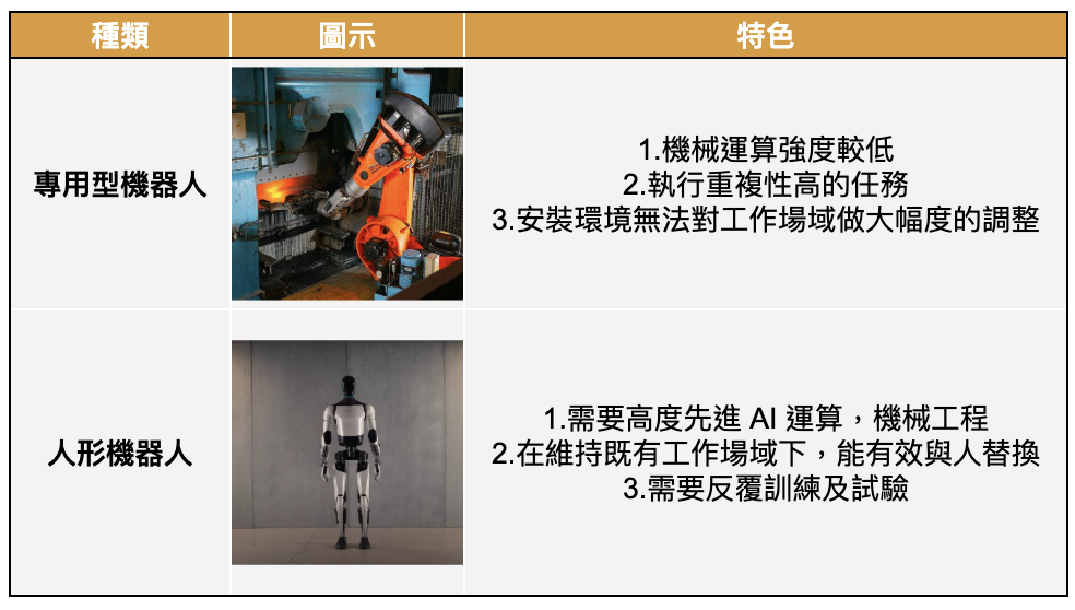 專用型裝置 vs 人形機器人對比