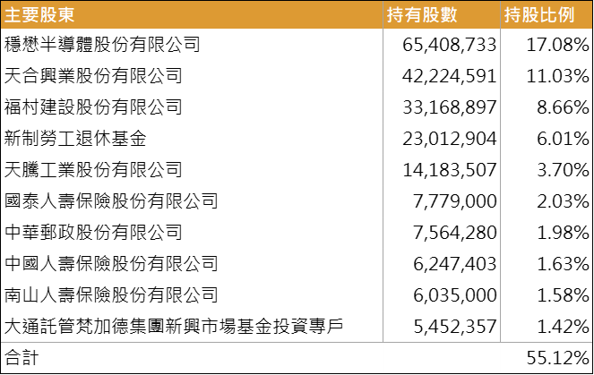 蔡茂禎前董事長曾在 2019 年持有高達約 9% 的股權,後續則因個人財務安排減少持股至 0.33%,目前已非公司前十大股東,但仍透過其公司包含福村建設和天騰工業合計持有 12.4% 股權,然兩間公司並未在 2021 年現金增資案中依比例參與,持股比例明顯下滑,估計此兩間公司未來仍有持續減持的可能性,此部分股權狀況需持續關注。