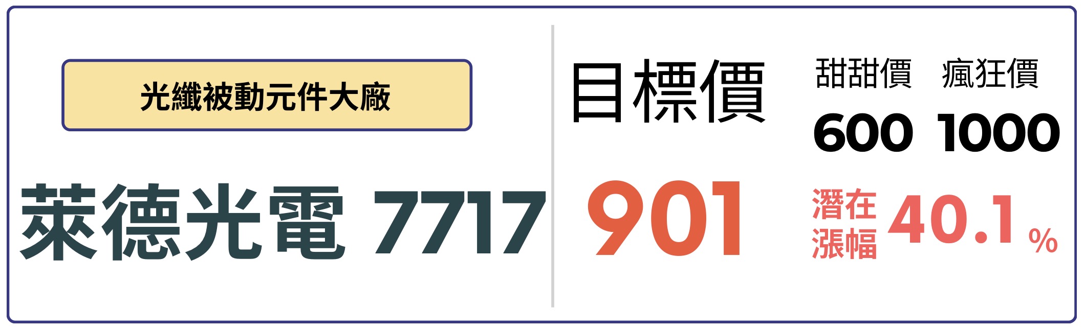 萊德光電-KY (7717) 成立於 1999 年,總部位於美國華盛頓州西雅圖,是一家擁有超過 26 年資歷的高階光纖技術廠商,主要產品為光纖被動元件,廣泛應用於衛星雷射