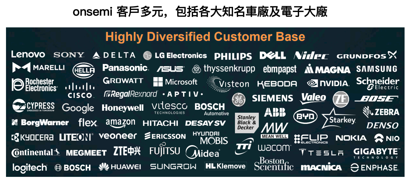 onsemi(NASDAQ:ON) 前身為 Motorola 半導體部門,於 1999 年切割出來,爾後透過一連串的併購,目前已成為於全球 10 國擁有 22 座廠房的車用、工控類比 IC 大廠,產品線遍佈功率元件、感測元件、毫米波雷達、類比元件、MCU、電源管理 IC 等。