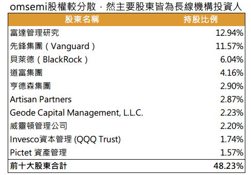公司前五大股東持股比為 41%,股權結構雖較為分散,但包括富達、先鋒、貝萊德等大股東都是傳統的長線投資基金,短期大幅賣出的風險並不高。