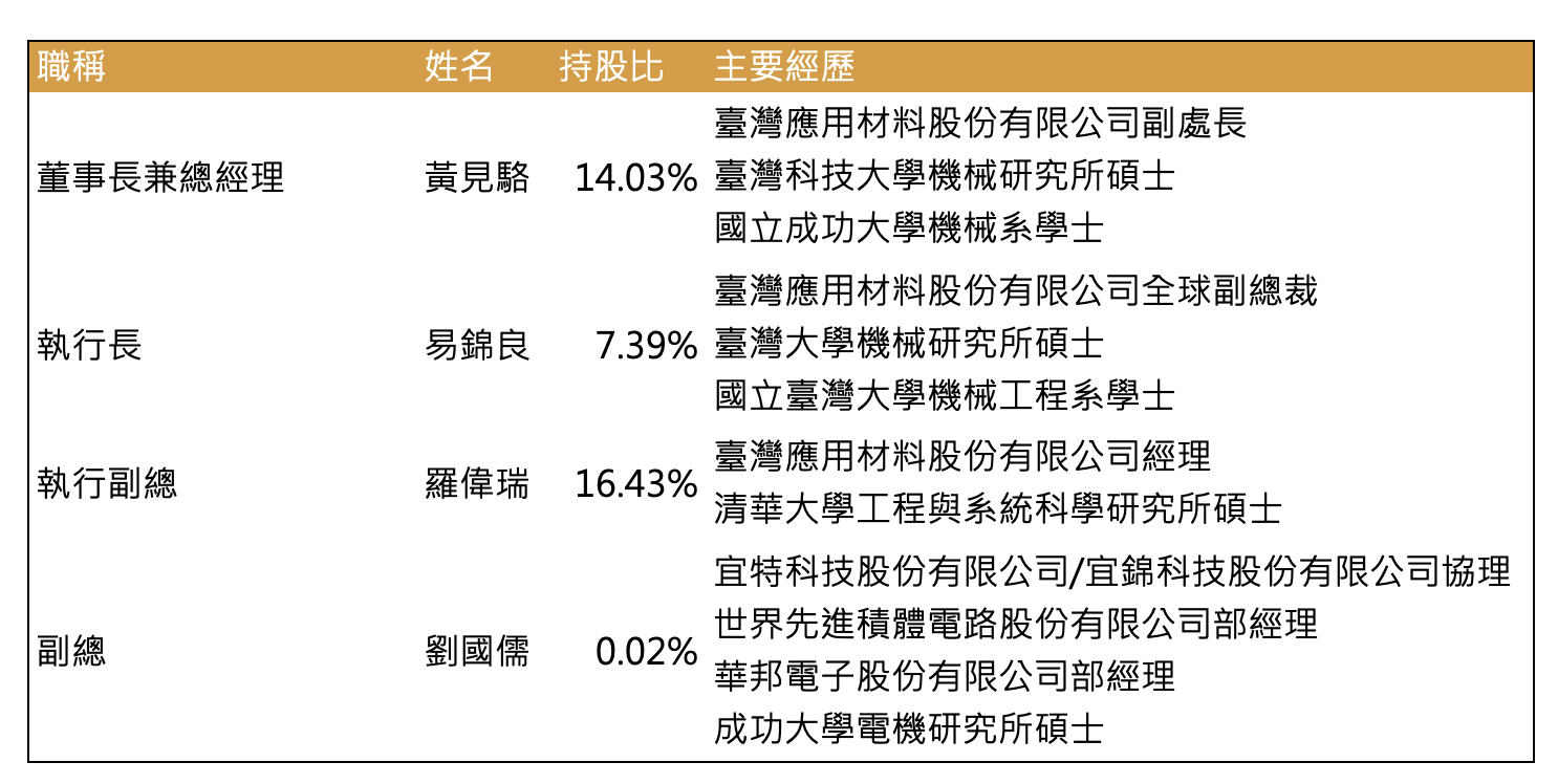 圖三:天虹主要經營層皆為創辦人且皆出自應用材料高管