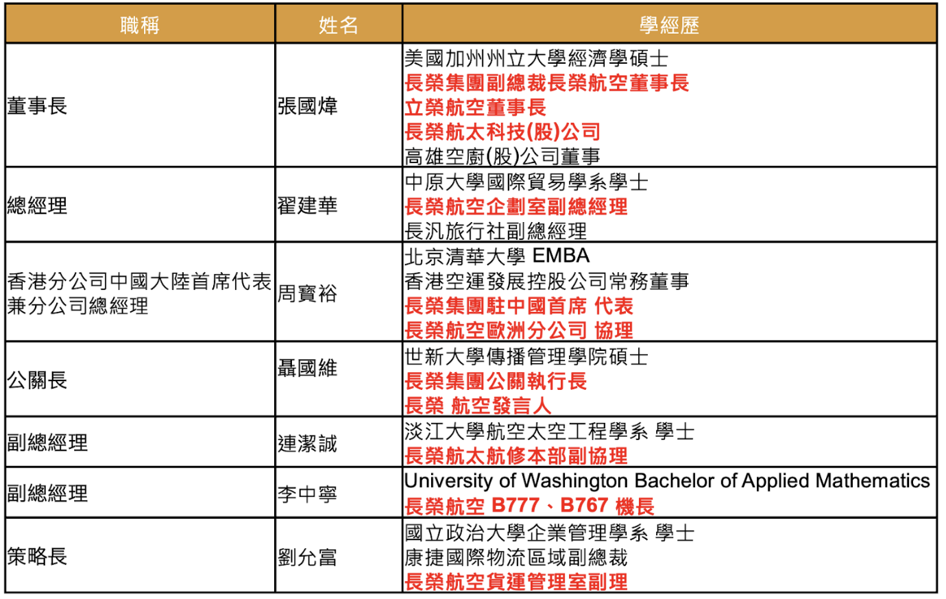 星宇經營層皆曾任職於長榮航管理層,具豐富航空產業經驗