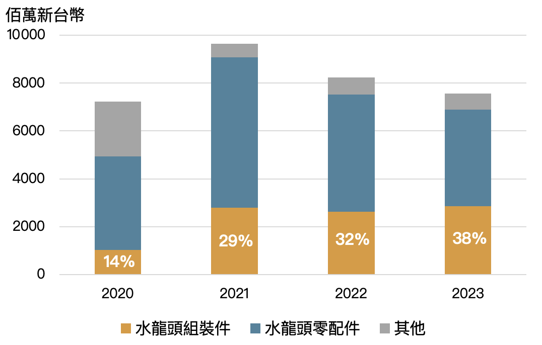隨自動化產線效益提升,帶動水龍頭成品組裝佔比逐漸提升
