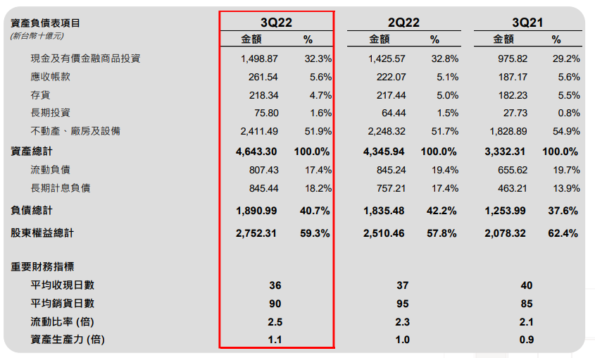 附錄:台積電資產負債表
