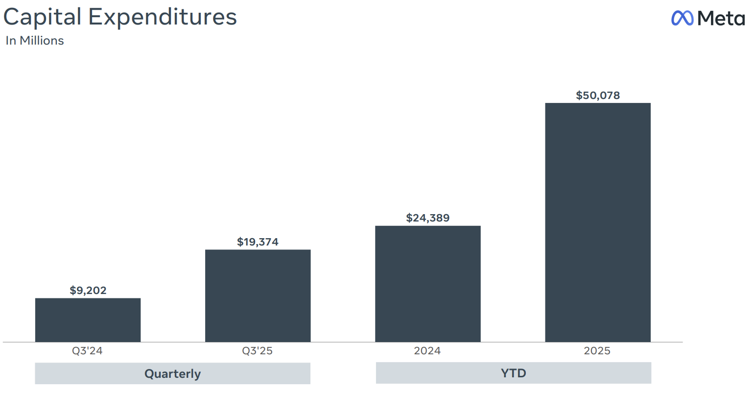 2. 市場不信任的「祖克柏折扣(Zuck Discount)」: 然而,市場對此高額 CapEx 的反應是負面的,部分原因在於投資人對祖克柏過去的「燒錢紀律」存疑。