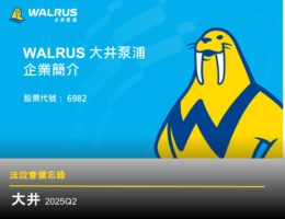24公司簡介: 大井(興櫃:6982)起初以製造民生用水泵為主,在 1999 年,進行企業轉型,由製造導向進入研發導向,創立大井動力實驗室,並開…