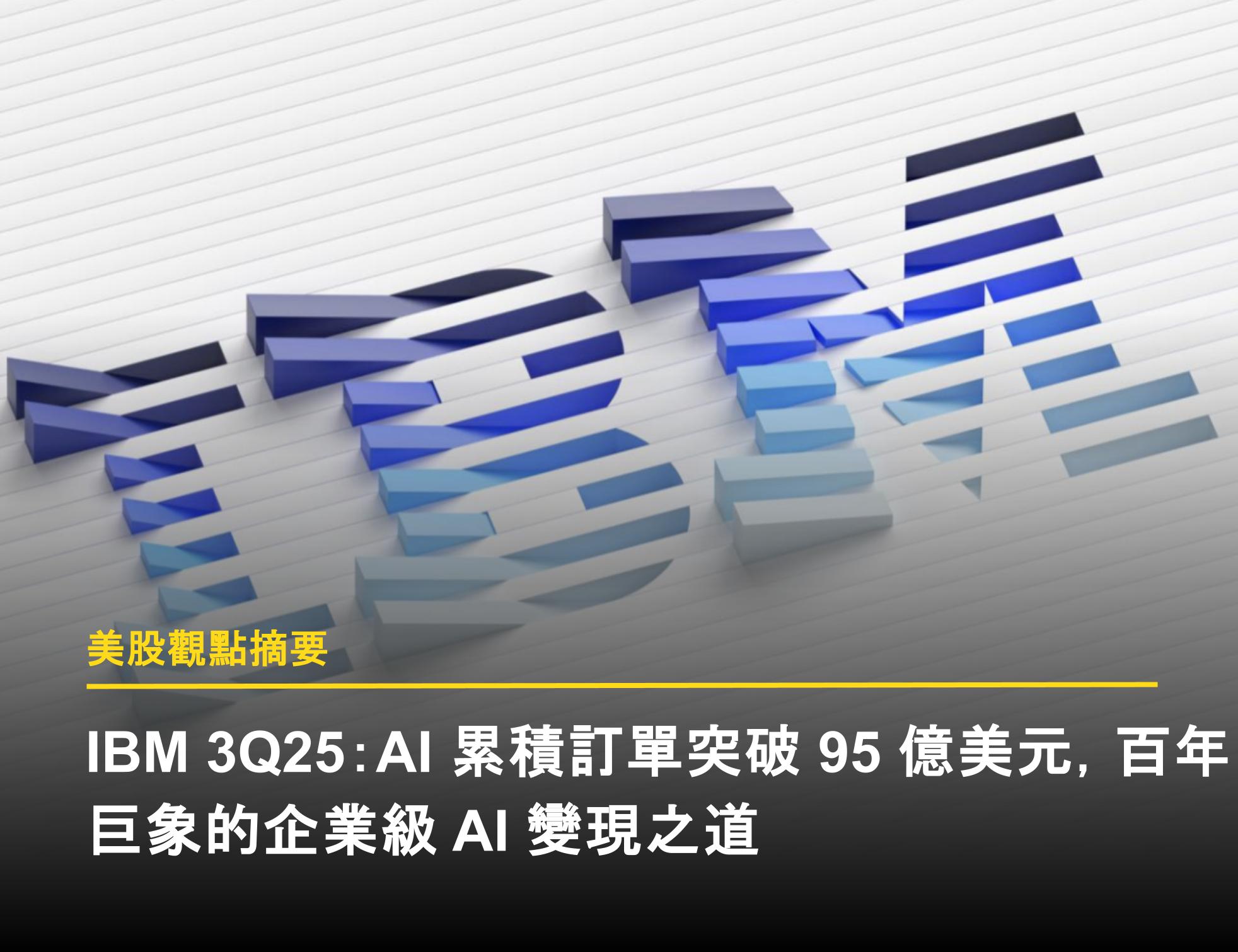 IBM(NYSE:IBM)於 2025 年 10 月 22 日召開 Q3 財報電話會議,公司單季營收、盈利和自由現金流全面超出市場預期,並同步上調全年營收成長與自由現金流指引。執行長 Arvind Krishna 強調,全球客戶正加速採用 IBM 的混合雲技術與企業級 AI 解決方案,帶動公司 AI 累積訂單(Book of Business, BoB)突破 95 億美元的里程碑,強勁的營運數據證明了其策略轉型已進入加速變現期。以下為我們對本次財報的核心觀點更新: