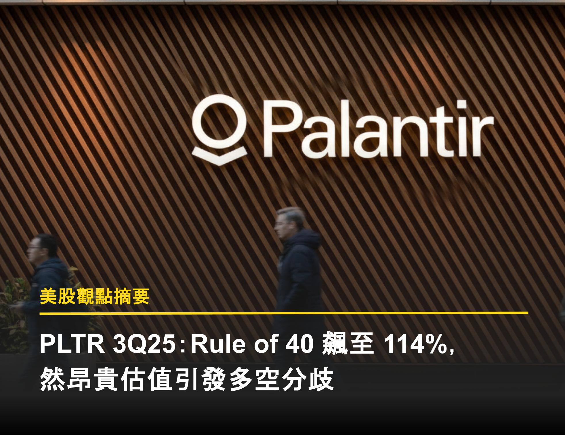 Palantir(Nasdaq:PLTR)於 2025 年 11 月 3 日召開了 FY2025Q3 電話會議,發布了一份極其亮眼的財報,營收年增 63%、EPS 均超越分析師預期,並再次上調全年財測。然而,市場焦點並非僅是單季的獲利數字,而是公司揭露的關鍵營運指標:其 Rule of 40 數值飆升至驚人的 114%,美國商業營收年增 121%,總合約價值(TCV)創下 28 億美元的歷史新高。